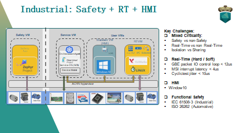 Figure 11 Usage and architecture design for controller, real-time function and HMI consolidation with ACRN hypervisor