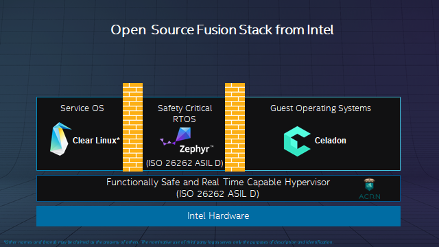 Based on ACRN, Intel is offering a path to a FuSA-capable open source fusion stack with Clear Linux, Zephyr and Celadon. Celadon is open source Android software stack on Intel architecture. It provides a turnkey solution that is flexible, verified compatible and it’s updated regularly. Celadon can stimulate compelling Android solutions for use in automotive and IOT projects.